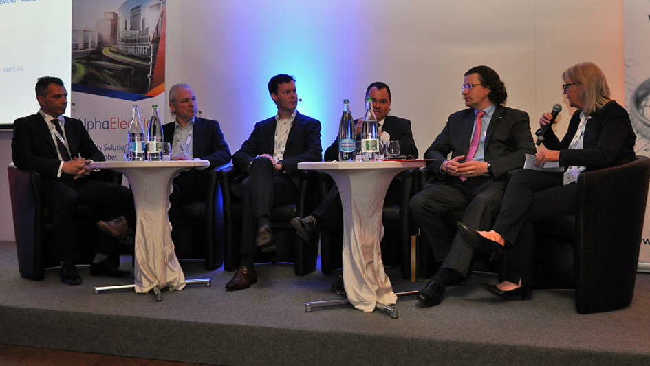 von 7: Austausch zu Internationalisierungsstrategien von Fuhrparks (v.l.): Vinzenz Pflanz (Sixt Leasing), Paul Verkinderen (Chevron), Harald van Meel (Volkswagen Financial Services), Jürgen Freitag (Siemens), Markus Falk (SAP) und Moderatorin Anne Dopson (International Fleet World)