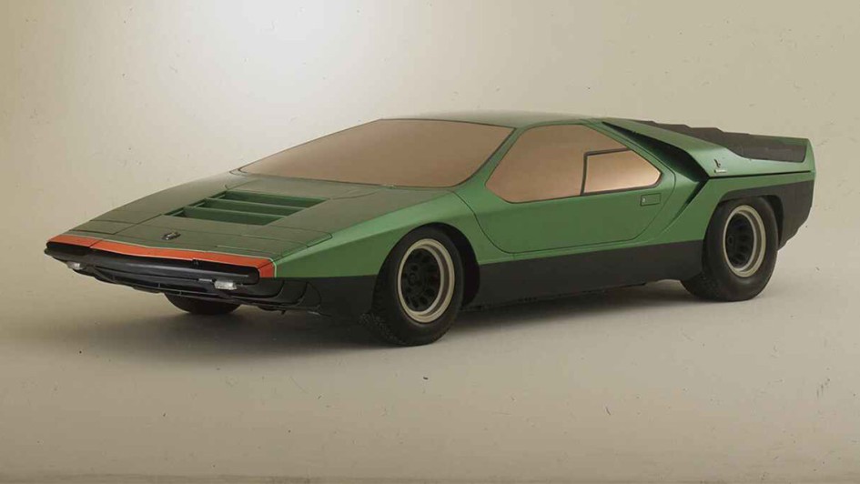 von 9: Die Supercar-Konturen der 1970er können auf eine Form reduziert werden: Keil. Extremes Design, das von Bertones Stardesigner Marcello Gandini und Giorgietto Giugiaro durchgesetzt wurde, und für das flache Sportcoupés wie Lamborghini Miura und Alfa Montreal direkte Vorboten waren.