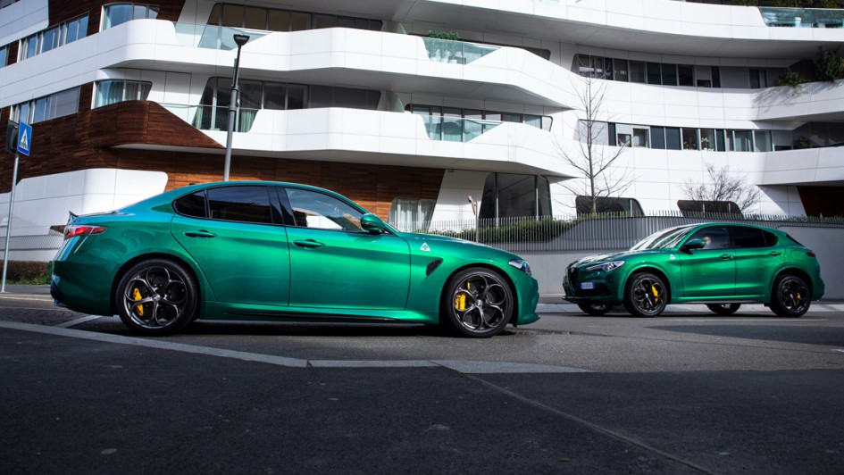 von 9: Das Grün blieb in Erinnerung. So feiert Alfa Romeo heute das 50-jährige Jubiläum des V8 mit der Sonderfarbe "Verde Montreal" für Stelvio und Giulia Quadrifoglio.