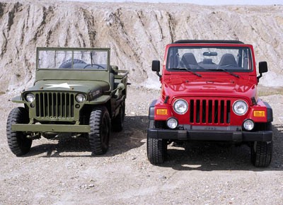 von 8: Ganz der Vater: Der moderne Wrangler gilt als legitimer Nachfolger der ersten Jeep-Generation. Zu erkennen ist die Verwandtschaft vor allem an der markanten Frontpartie.