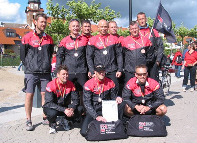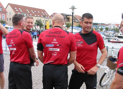 von 14: Das ALD-Team am vergangenen Samstag beim Müritzlauf. Für jede Minute unter der vorgegebenen Zeit von sieben Stunden und 15 Minuten gab es 1.000 Euro fur die Deutsche Tafel.