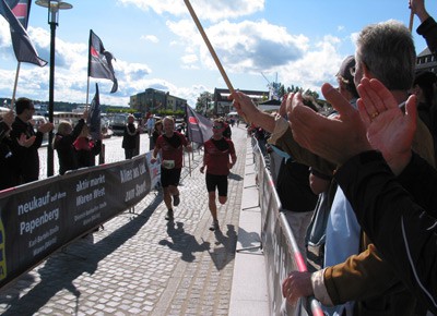 von 14: Im Ziel scheinte dann auch wieder die Sonne, passend zum großen Erfolg. Die Läufer machten so viel Zeit gut, dass sie eine Summe von 94.000 Euro erliefen.