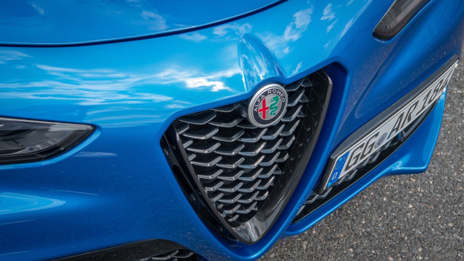 von 17: Das LED-Matrixlicht hat der Alfa Romeo Stelvio 2.2 Diesel seit dem Modelljahr 2023. Beim Blinken wandert "das Orange" von innen nach außen – etwas too much für den stilvollen Mittelklasse-Italiener.