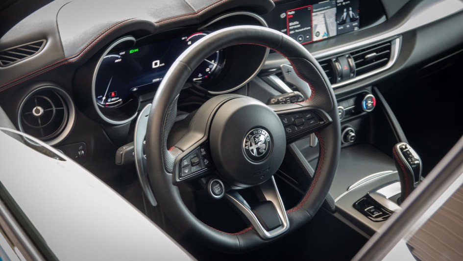 von 17: Die Ledersitze sind im Alfa Romeo Stelvio Competizione und Veloce identisch. Und sie lassen sich perfekt an den eigenen Körper anpassen.