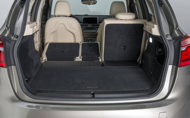 von 14: Zwischen 468 Liter und 1.510 Liter (umgeklappte Rücksitze) bietet der bayerische Familie-Van und liegt damit etwas unter dem Niveau der B-Klasse (488 bis 1.547 Liter.