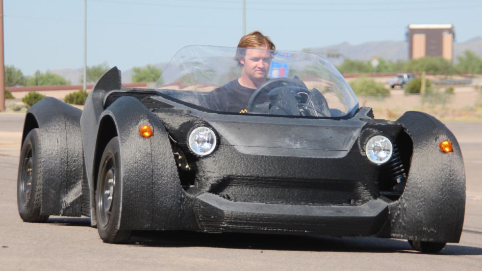 von 5: In nur 44 Stunden hat sein Team auf einer Messe in Chicago den Strati gedruckt, weitere 15 Stunden wurde die Karosse computergesteuert geschliffen, gefräst und poliert und binnen zwei Tagen war die Antriebstechnik des Renault Twizzy eingebaut
