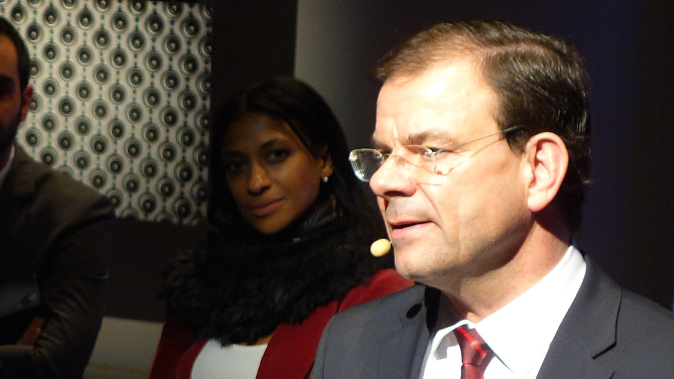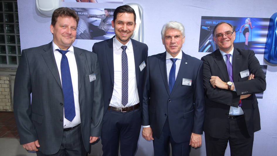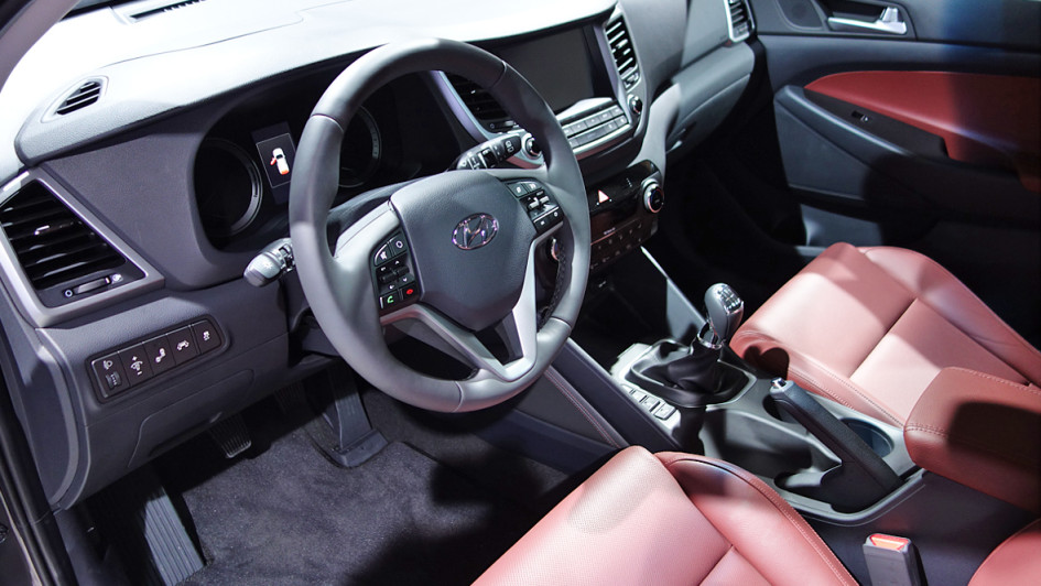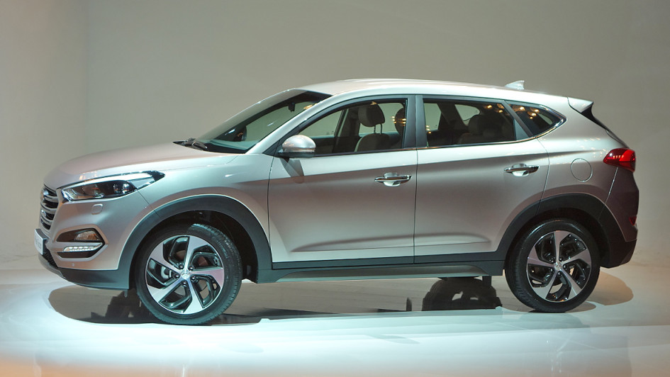 von 12: Die breite Öffentlichkeit muss sich noch bis zum Genfer Autosalon Anfang März gedulden, Händler und Journalisten durften schon einmal vorab einen Blick auf den neuen Hyundai Tucson werfen. V.l.n.r.: Olaf Jahr (ASL Auto-Service Lichtblau), Patrick Schulz (Hyundai), Manfred Eggert (Auto Eggert) und Frank Thomas Dietz (Hyundai)