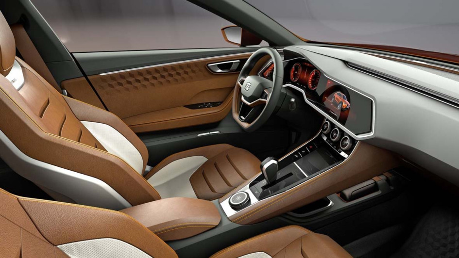 von 10: Die Innenarchitektur der Studie wird es kaum in die Massenproduktion schaffen, aber zumindest sind frei konfigurierbare Instrumente ja bereits Standard in diversen Baureihen des Volkswagen-Konzerns, so dass auch bei der Serienversion des Seat-SUV mit ihnen zu rechnen ist.