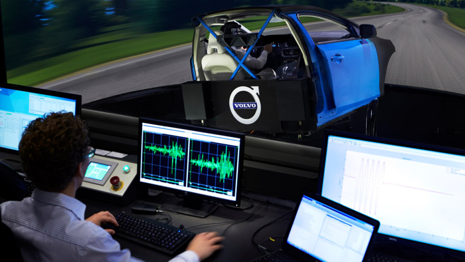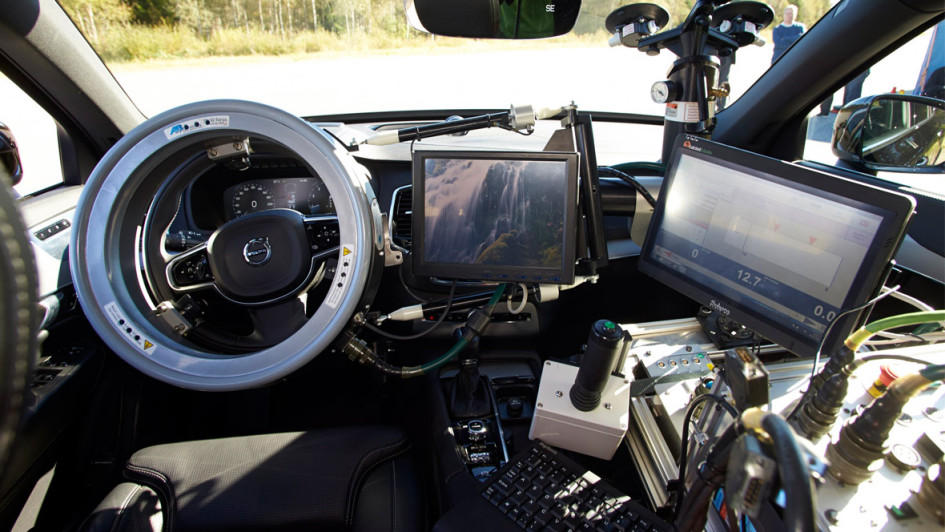 von 4: Einen Vorgeschmack liefert die Fahrt im umgebauten S80 auf der kurvigsten der 25 Teststrecken von Hällered. Die engen Biegungen meistert er ebenso souverän wie die eingebauten Bodenwellen, die beim rasanten Überfahren einfach weggebügelt werden.