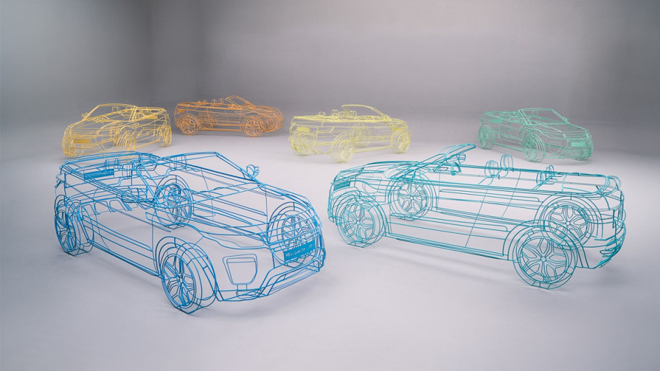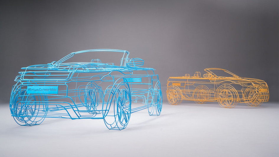 von 4: Die maßgeschneiderten 1:1-Drahtmodelle wurden vom eigenen Design-Team von Land Rover entwickelt und zeigen den offenen Briten in den populärsten Straßen der britischen Hauptstadt.