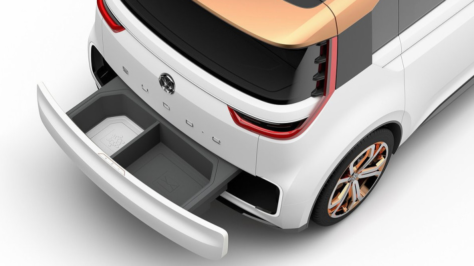 von 15: Parkt der BUDD-e auf offener Straße, können Ihn Paketdienste als Briefkasten nutzen und mit einem speziellen Zugangscode eine große Schublade in der Heckschürze öffnen, in der die Bestellung abgelegt werden kann.