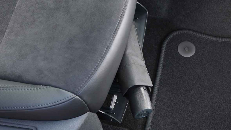 von 6: Die Tschechen haben sich zum neuen Modelljahr auch noch ein paar neue Simply-Clever-Lösungen einfallen lassen. So gibt es künftig unter dem Beifahrersitz einen Regenschirm.