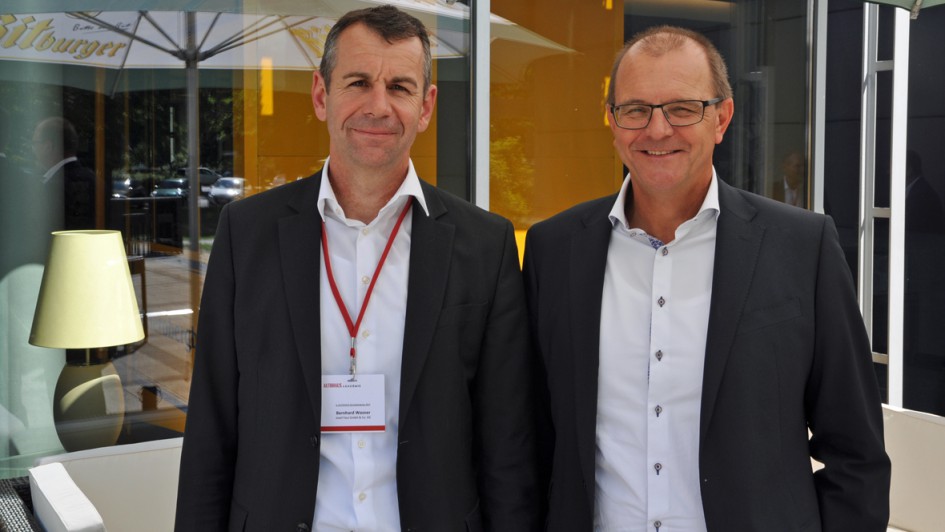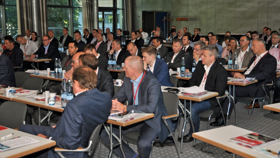 von 14: Rainer Schneider, Senior Managing Consultant NTT Data (links), und Markus Klamet, Competence Unit Manager Aftersales NTT Data (rechts im Bild) lieferten den Kongressteilnehmern Vorabinformationen aus der Studie "Megatrend Digitalisierung im Automotive Aftersales".