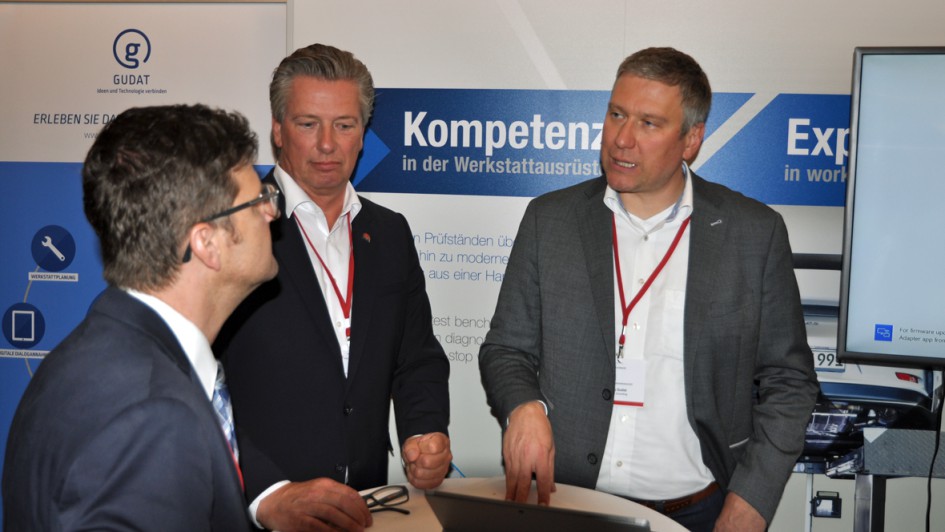 von 14: Moderator und AUTOHAUS-Chefredakteur Ralph M. Meunzel und Bernhard Wasner (links im Bild) vom Autohaus Josef Paul in Passau. Der Niederbayer ergänzt mit seinen Digitalisierungs-Anwendungen das Programm von Hersteller Daimler.