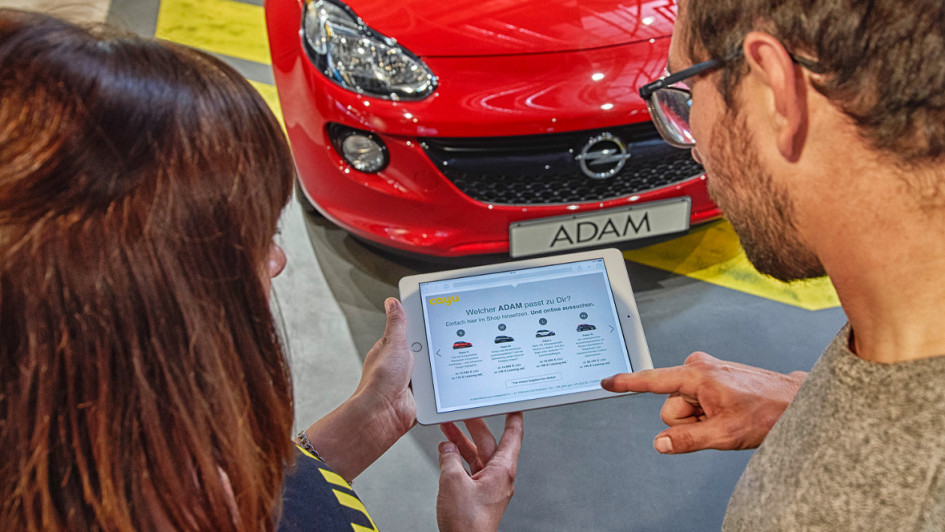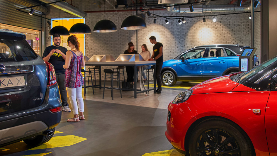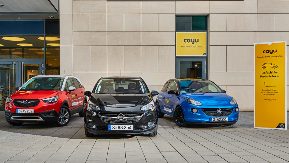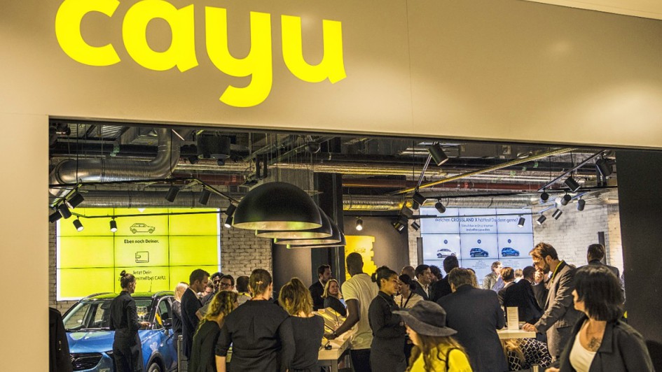 von 13: Start frei für eine neue Art des Autokaufs: Opel-Marketing-Direktor Christian Löer, Marketingchefin Tina Müller, Deutschlandchef Jürgen Keller, Roman Still, Vorstandssprecher AVAG Holding SE, und Marcus Stein, Geschäftsführer Autohaus Staiger, bei der gestrigen Eröffnung des ersten CAYU-Stores in Deutschland (v.l.n.r.).