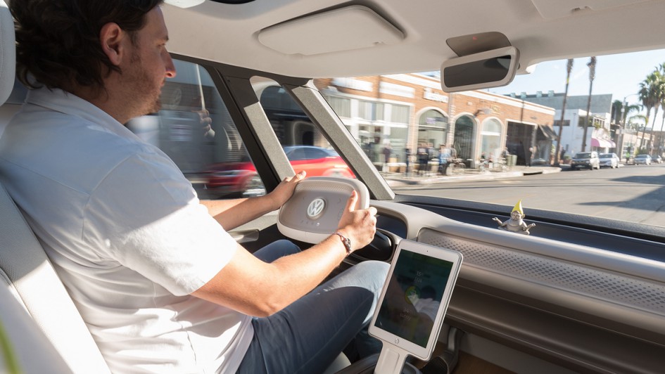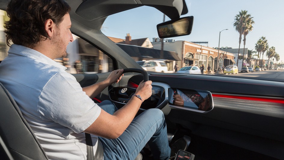 von 10: Wer erst einmal das Lenkrad des I.D. in der Hand hat und beim Rangieren statt in klassische Außenspiegel auf das von Kameras übertragene Bild im Rückspiegel blickt, vergisst den frühen Entwicklungsstand.