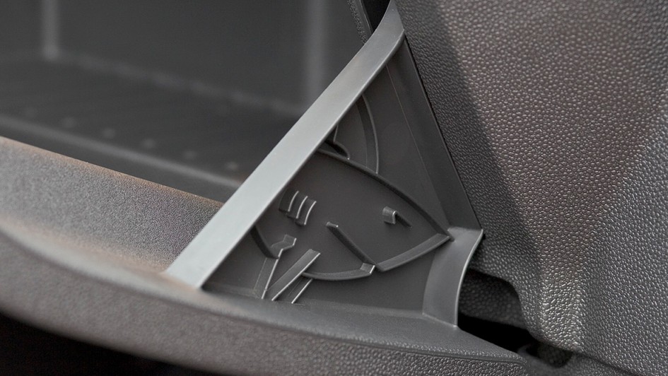 von 6: Genau hinsehen muss, wer das Osterei am Elektroauto-Bestseller Zoe entdecken will: An den Griffen der Fondtüren befindet sich ein in den Kunststoff geprägtes Fingerabdruck-Muster.