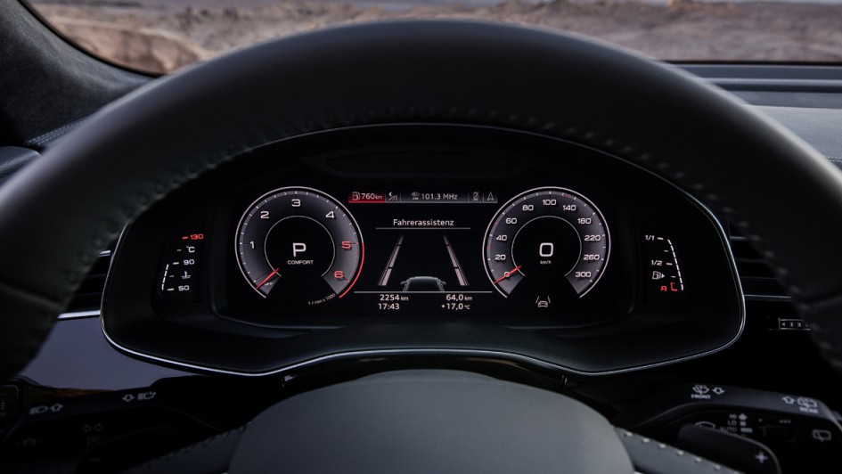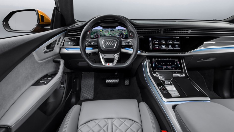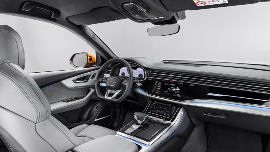 von 14: Wie in dieser Klasse üblich, gibt es reichlich weiches Leder, blitzblank polierte Hochglanz-Oberflächen und Rundum-Ambientelicht – alles in der gewohnten Audi-Perfektion verarbeitet.