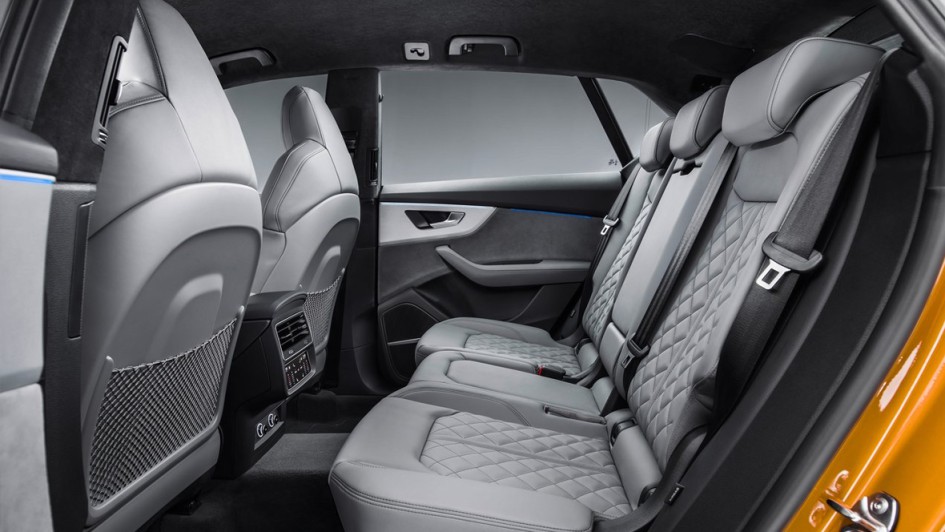 von 14: Mit dem Q8 führt Audi das neue SUV-Gesicht ein, das sich mit einem acht- statt sechseckigen Single-Frame-Kühlergrill mit vertikalen Streben und einer zusätzlichen Kunststoffmaske drumherum von den übrigen Modellen unterscheidet.
