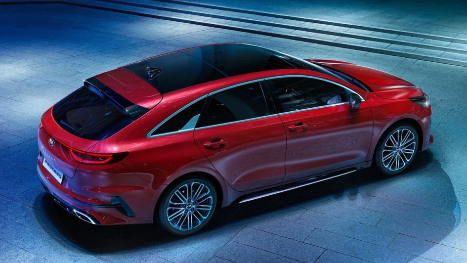 von 6: Im Vergleich zum klassischen Kombi verläuft die Dachlinie beim Shooting Brake flacher und endet in einer schräger stehenden Heckklappe. Trotzdem fällt das Gepäckabteil bei der neuen Variante mit 594 Litern in der Grundkonfiguration kaum kleiner aus als beim Kombimodell Ceed Sportswagon (625 Liter).