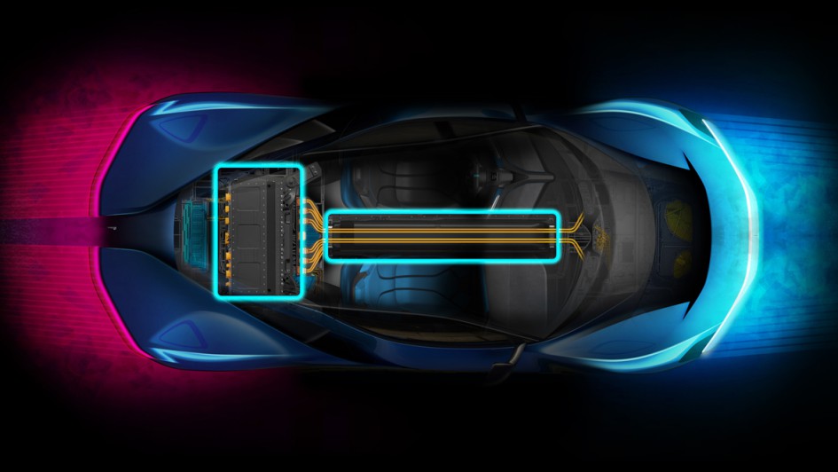 von 11: Die Designskizzen des Battista, der in der Anfangsphase den Code "PF0" trug, zeigen eine vollständig aus Carbonfaser gefertigte Karosserie mit schwungvollen Rundungen und großzügigen Glasflächen. Ein einzelner, dynamischer Lichtstreifen fließt an der Fahrzeugfront entlang und ersetzt die traditionellen Scheinwerfer.