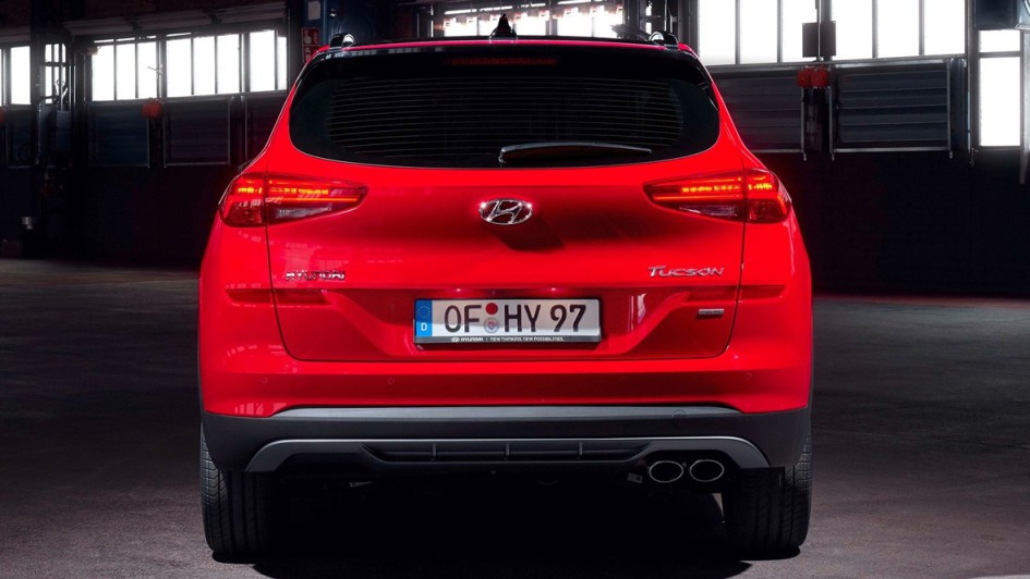 von 10: Ein neuer Kühlergrill, geänderte Front- und Heckschürzen, wuchtige 19-Zöller, neue Tagfahrlichter, weniger Chrom, dafür mehr dunkle Dekor-Elemente und natürlich das prominente Doppel-Endrohr machen den Tucson N-Line markanter.