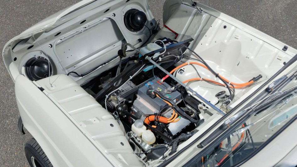 von 9: Die rein elektrische Neuauflage des von 1968 bis 1971 gebauten Open-Air-Modells wird statt von einem 26 PS- Benziner von dem aus dem Twizy bekannten E-Motor mit neun kW / zwölf PS angetrieben.
