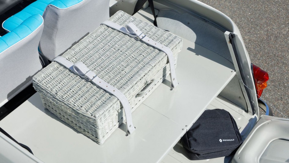 von 9: Statt Sitzbank gibt es jetzt über dem Batteriestaufach einen großen Picknickkorb. Auf ein Verdeck oder eine Abdeckung haben die Franzosen verzichtet. Türen fehlen wie bei der Vorlage ebenfalls.
