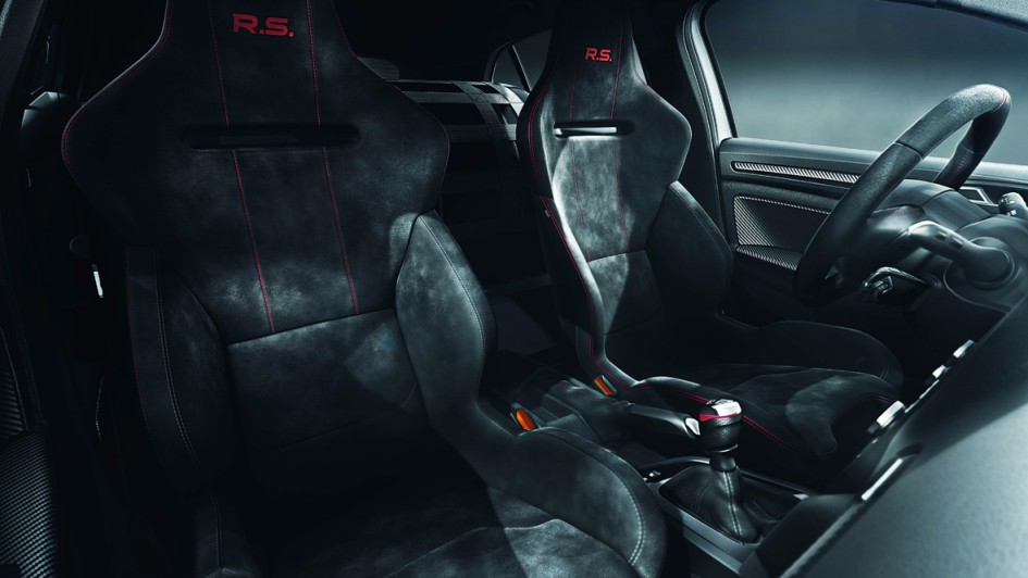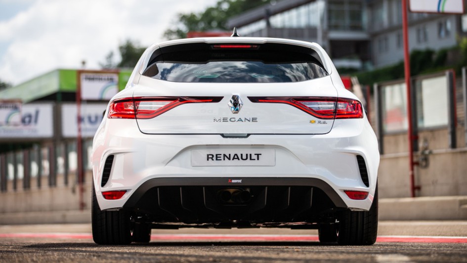 von 10: Im Vergleich zum Mégane R.S. Trophy bringt die R-Version 130 Kilogramm weniger auf die Waage. Zur Gewichtsreduzierung tragen unter anderem der Verzicht auf die hintere Rücksitzbank und eine leichtere Verbundlenker-Hinterachse ohne Allradlenkung bei.