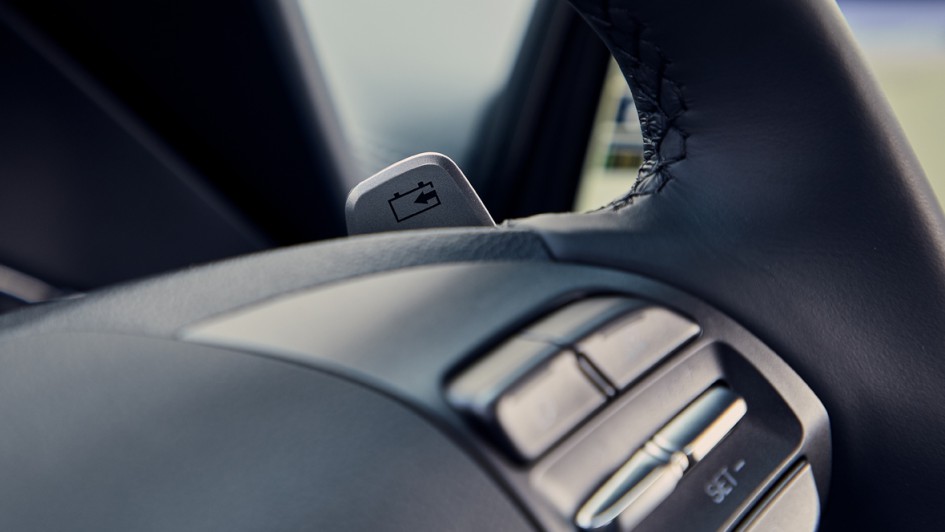 von 12: Damit möglichst wenig Strom verbraucht wird, hat der Ioniq Elektro nach wie vor eine vierfach justierbare Rekuperationsmöglichkeit, die der Fahrer via Bedienwippe am Lenkrad nach Gusto aktivieren kann.
