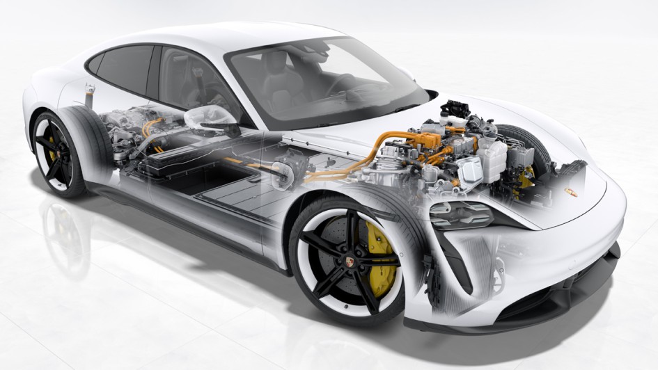 von 13: Geht der Strom zur Neige, kann man den Porsche-Akku mit bis zu 350 kW Ladeleistung aufladen. Dann soll die Batterie binnen gut 20 Minuten wieder nahezu die volle Kapazität erreichen.