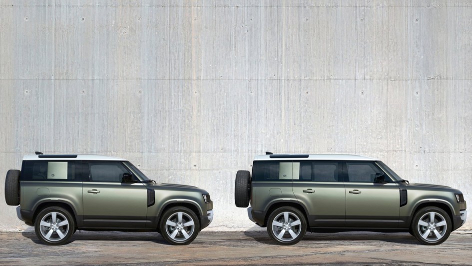 von 17: Zwei Radstände bietet Land Rover zum Marktstart an. 2,59 Meter und 3,02 Meter. Das macht eine Außenlänge von knapp 4,5 Metern für die Kurzversion, die weiterhin "90" genannt wird, und knapp fünf Meter für die Langversion, den 110er, der jedoch im Landy-Jargon der Mittlere ist.