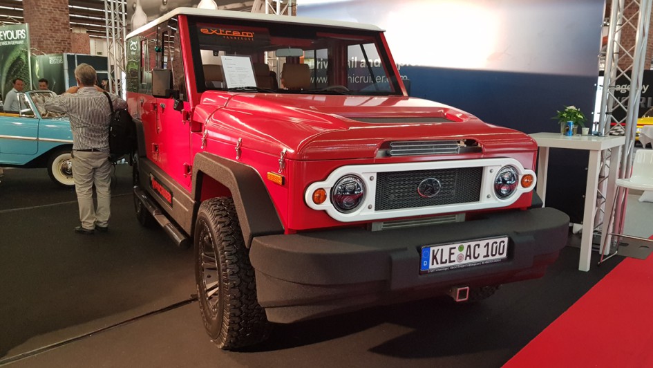 von 11: ... dass es sich um ein Amphibienfahrzeug handelt. Wer am Heck den Kopf senkte, konnte einen Wasserstrahlantrieb entdecken. Ein Offroader, der sich auch im Nassen wohl fühlt - 195.000 Euro werden dafür fällig.