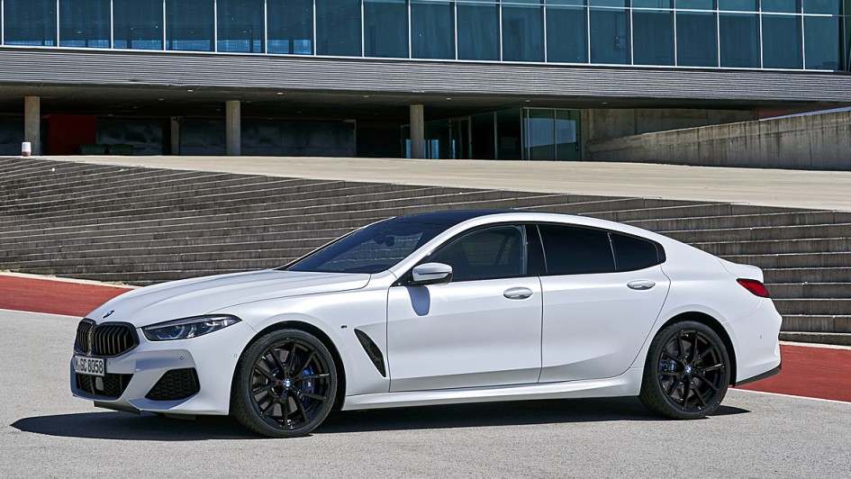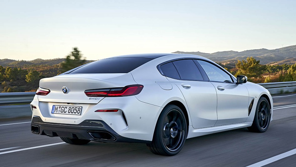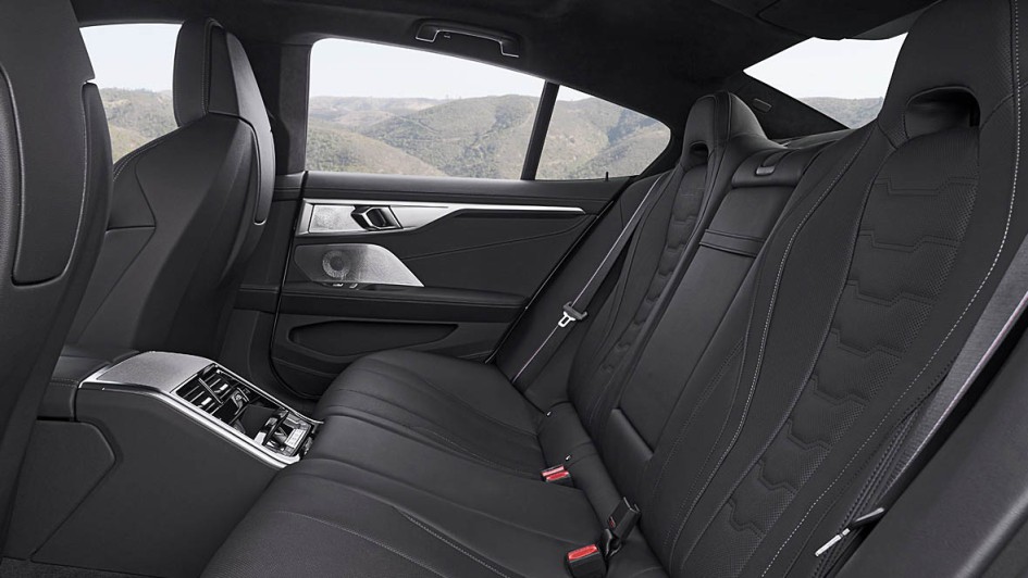von 9: BMW hat das 8er Coupé kurzerhand um über 23 Zentimeter gestreckt und nun auf 5,08 Metern Länge nicht nur zwei weitere Türen, sondern auch drei leidlich bequeme Sitzplätze im Fond untergebracht.