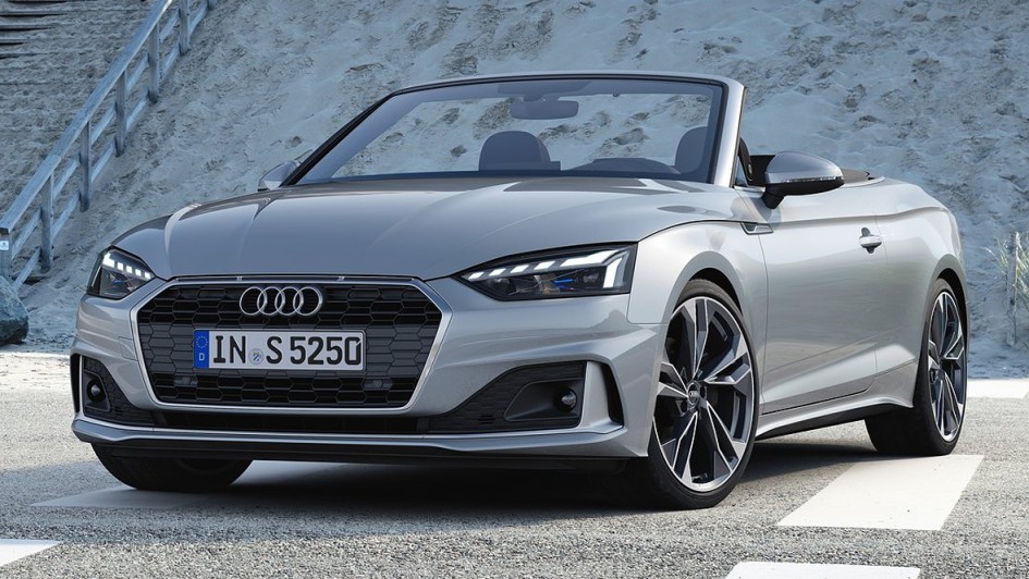 von 10: Die Audi A5-Modelle werden zum Modelljahr 2020 elektrifiziert, bekommen ein modernes Infotainment-System und deutliche optische Retuschen. Erkennungszeichen ist die überarbeitete Front mit einem breiteren Kühlergrill, horizontalen Luftschlitzen an der Motorhaube und größeren Lufteinlässen am Stoßfänger.
