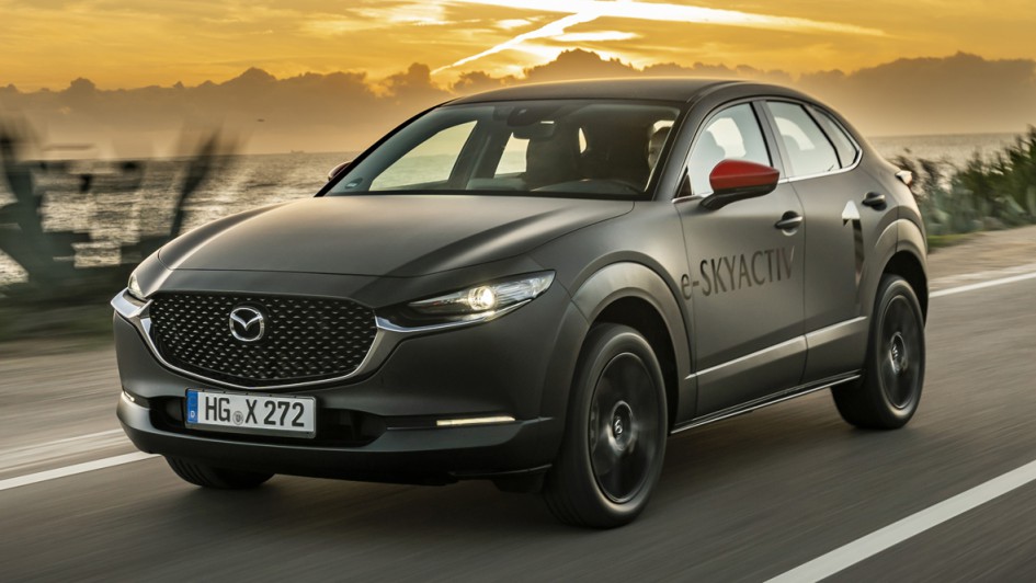 von 18: Mazda positioniert sein erstes E-Modell, das Kompakt-SUV MX-30, konsequent als Zweitwagen für die Stadt. Dort reichen nach ihrer Einschätzung rund 140 PS Motorleistung genauso wie 200 Kilometer Reichweite.