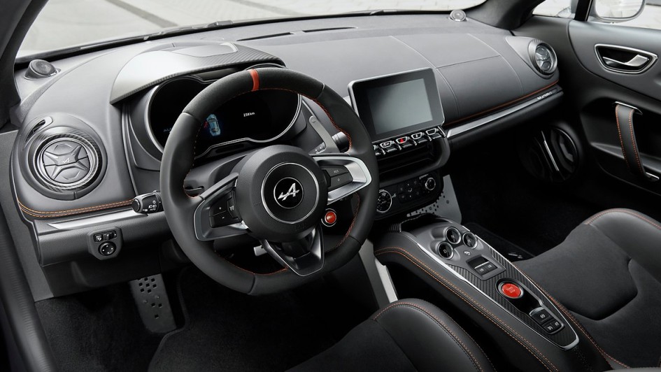 von 7: Zur Alltagstauglichkeit der Alpine A110 gehören serienmäßige Parksensoren, und die Infotainment-Fraktion wird mit großem Touchscreen in der Mittelkonsole sowie einem Instrumentarium belohnt, das aus purer Anzeigefläche besteht.