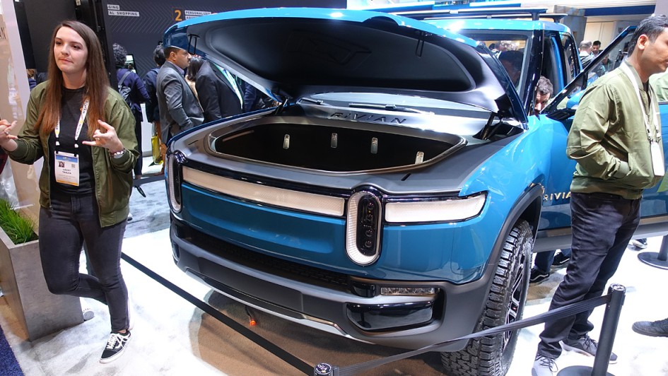 von 23: Mit dabei am Amazon-Stand: Rivian. Anfang 2019 war der Online-Versandhändler bei dem Elektroauto-Start-up eingestiegen und hat dort mittlerweile einen Großauftrag über 100.000 E-Transporter platziert.