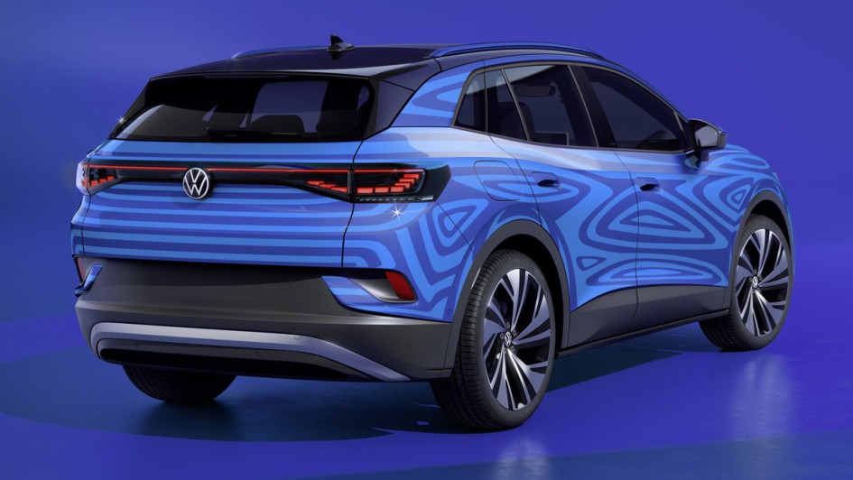 von 5: Zum Start gibt es eine Ausführung mit Heckantrieb, später folgt ein Allradmodell. Als maximale Reichweite des ID.4 gibt VW rund 500 Kilometer an – knapp 50 Kilometer weniger als beim kleineren ID.3. Im Bild eine Studie des ID.4.
