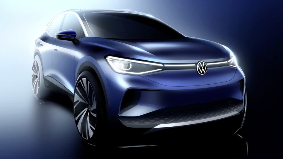 von 5: Genaue technische Daten nennt VW anlässlich der nun erfolgten Premiere einer sehr seriennahen Studie nicht. Motoren und Akkupakete dürften sich am ID.3 orientieren, dessen Spitzenversion 150 kW/204 PS stark ist und bis zu 77 Kilowattstunden elektrische Energie speichert. Im Bild eine Studie des VW ID.4.