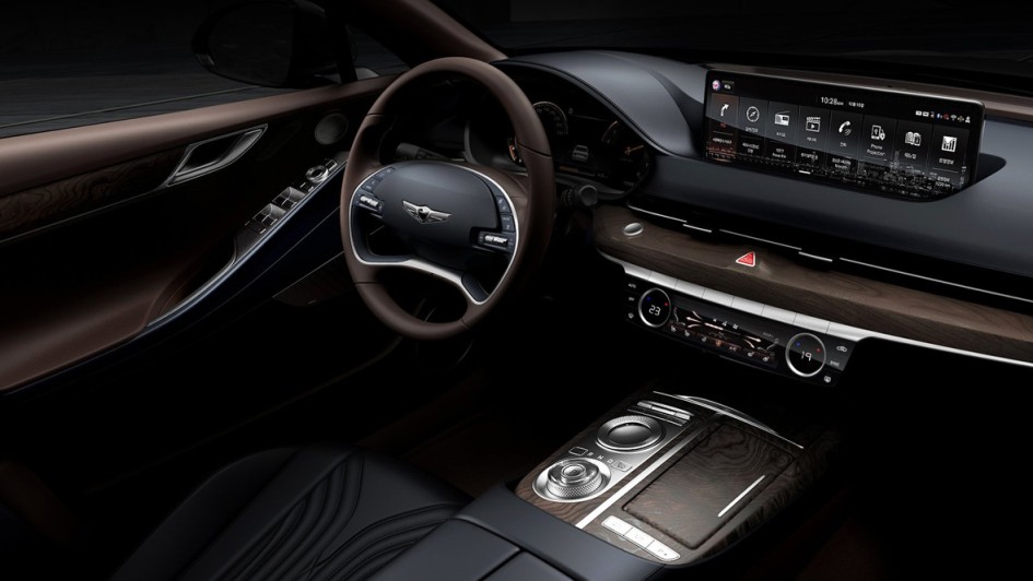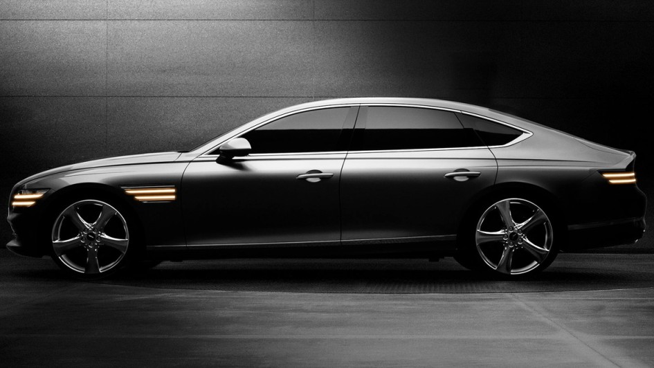 von 5: Die im Wettbewerb zu Audi A6, 5er BMW oder Mercedes E-Klasse antretende Limousine übernimmt die Formensprache, die bereits das SUV GV80 sowie das aufgefrischte Oberklassenmodell G90 vorgegebenen haben ...