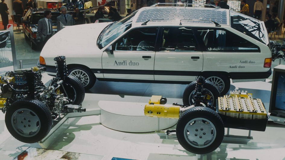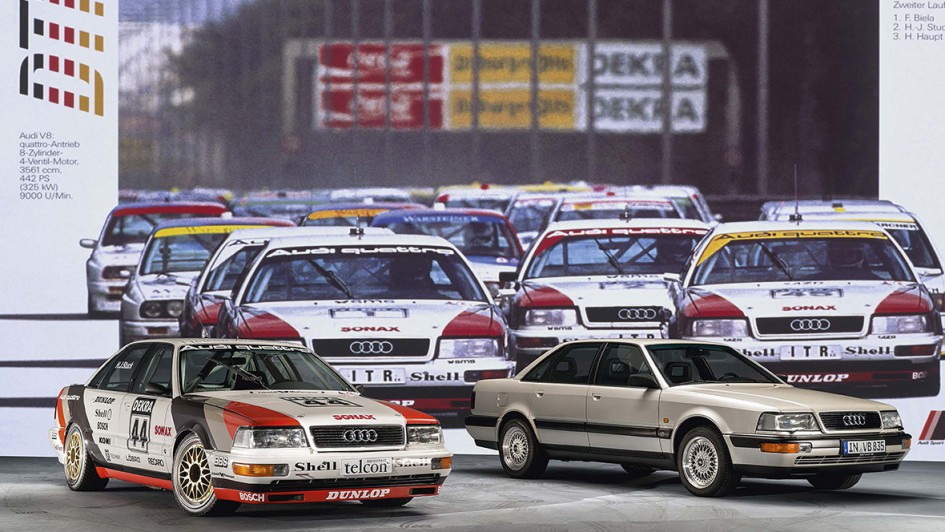 von 12: Auf dem Genfer Salon 1989 präsentierte Audi den 200 quattro 20V als neues Spitzenmodell der Baureihe mit 2,2-Liter-Fünfzylinder-Benziner mit Turboaufladung und einer Leistung von 162 kW/220 PS.