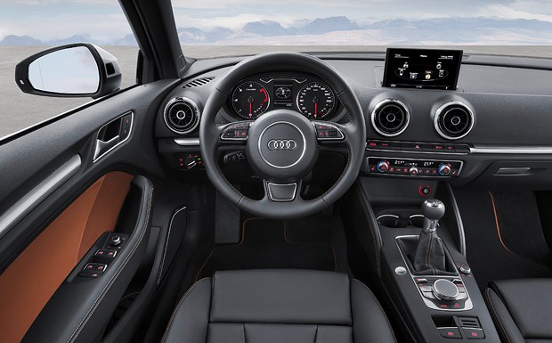von 15: Beim Thema Infotainment und Connectivity sieht sich Audi als Segmentführer. An der Spitze steht die MMI Navigation plus mit 64 GB Festplatte, DVD-Laufwerk und Sprachbedienung.
