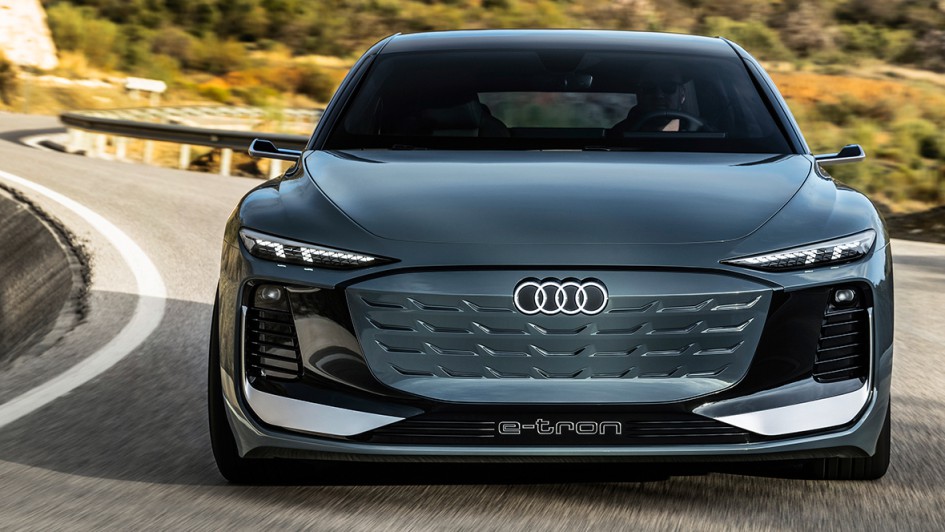 von 8: Markant ist der verschlossene Singleframe-Grill, der von tief liegenden Lufteinlässen für die Kühlung von Antrieb, Akku und Bremsen flankiert wird.
