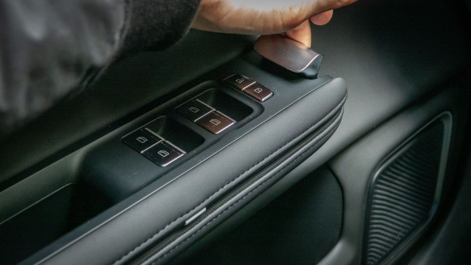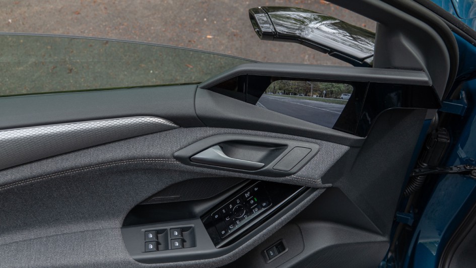 von 36: Die kapazitiven Felder für Sitzmemory, Spiegelverstellung und Lichtfunktionen in der Türverkleidung des Audi A6 e-tron sind deplatziert und aufgrund der Materialanmutung eines Audi nicht würdig. Die Fensterheber sind aufgrund dessen zu weit hinten angebracht, so dass beim Bedienen das Handgelenk wohl meistens ungünstig abgewinkelt werden muss.