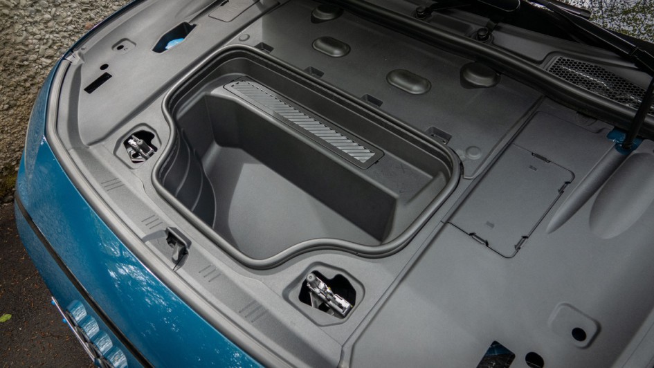von 36: Der 27-Liter-Frunk des Audi A6 Avant e-tron öffnet durch das Streichen der Fläche zwischen Audi-Ringen und Motorhaube (sofern sich der Schlüssel in der Hosentasche befindet). Schön gelöst.