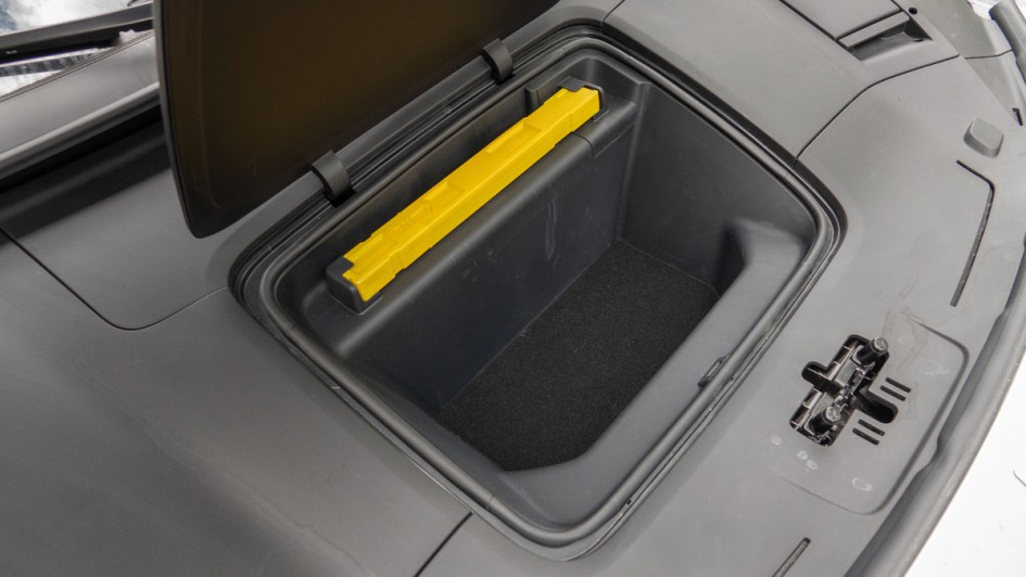 von 36: 15 Liter passen in den Frunk des Polestar 4, geöffnet wird wie bei einer Motorhaube üblich. Im Fahrerfußraum Hebel ziehen und dann an der Motorhaube nochmals einen "umlegen".