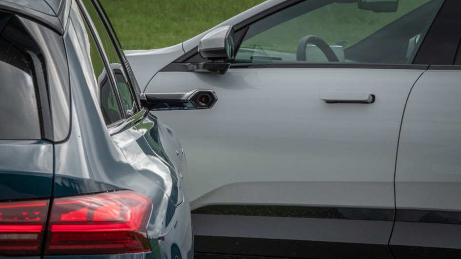 von 36: Der Audi A6 Avant e-tron hat auch ein unsinniges Gimmick an Bord, das kostet sogar rund 1.500 Euro extra und ist damit völlig überflüssig. Die Kameraspiegel sehen ungewohnt aus und machen den A6 dennoch 2,14 Meter breit – exakt diese Breite besitzt auch der Polestar 4.