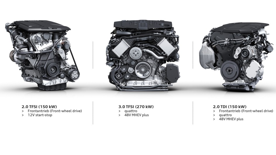 von 12: Unter der Fronthaube bleibt es klassisch: Audi verzichtet beim neuen A6 auf reinelektrische Antriebe und bietet zunächst ausschließlich Verbrennungsmotoren mit unterschiedlichen Elektrifizierungsgraden.