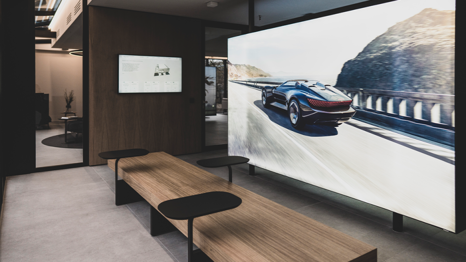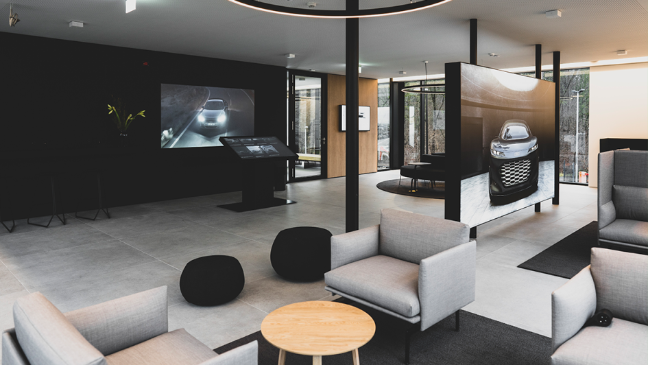 von 9: Demjenigen, der mit Hyundai, Ford, Mercedes, Dacia oder BMW die Schnelllader nutzen will, steht nur ein kleiner karger Raum mit Snack- und Kaffeeautomaten, harter Sitzbank und Toilettenzugang zur Verfügung.